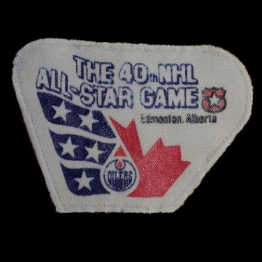 This patch was only worn on the All-Star Game jerseys 1989. The teams wear the annual NHL All-Star Game patch since 1990 (Pittsburgh Penguins) The Oilers hosted the 40th NHL All-Star Game on February 7th, 1989 at the Northlands Coliseum in Edmonton, Alberta (Canada). |