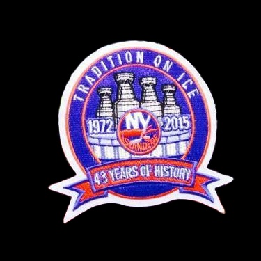in Brooklyn in 2015. The patch shows the 4 Stanley Cup Trophys the Islanders won from 1980 to 1983 at the top of the Arena and the Islanders logo. |