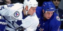 coincide with the announcement of the new inductees to the Hall of Fame. The Toronto Maple Leafs are always a representative in the game, the other team changes from year to year - the Rangers played in 1999. |