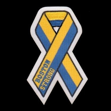 “Boston Strong” blue and yellow ribbon patch at the game vs.