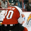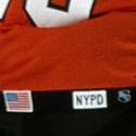 Flyers wore three patches for one game on their orange jerseys. 'FDNY' on the left side, 'the US flag' in the middle and 'NYPD' on the right side of the bottom back of their sweaters. After the game the jerseys were auctioned for the NHL's Twin Towers fund. |