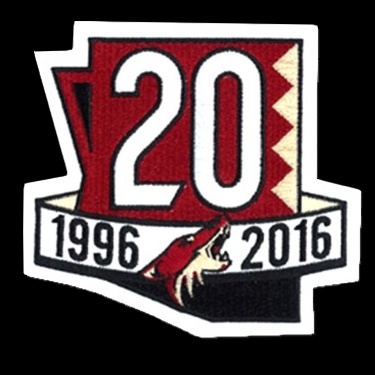 The Coyotes wear this patch to celebrate their 20th Anniversary.