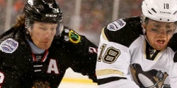 Both teams wore specially-designed uniforms with the NHL Stadium Series "Chicago" patch on the right sleeve of their jerseys. Each jersey features a chrome-treated version of their regulary team logos - unique to the NHL Stadium Series.