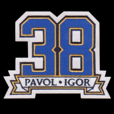 wore this patch during one game against the Chicago Blackhawks. Both players wore #38 for the Blues - Igor Korolev from 1992-1994 and Pavol Demitra from 1996-2004 ... and both died on the the air plane crash on September 7th with the KHL team Lokomotiv Yaroslavl on board. |