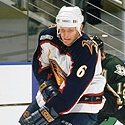 NHL used this patch to usher in the new millenium. The patch came in 8 different colours to match the team colours - black, burgundy, Capitals blue, eggplant, green, navy blue, red and royal blue. Atlanta wore navy blue on their home and burgundy on their away uniforms. |