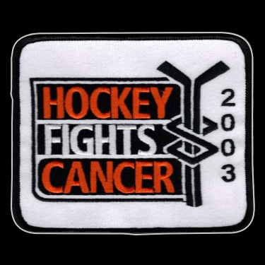 Every captain of the 30 NHL teams wore this commemorative patch on their jerseys on to support the NHL/NHLPA Hockey Fights Cancer foundation by auctioning their jerseys. |